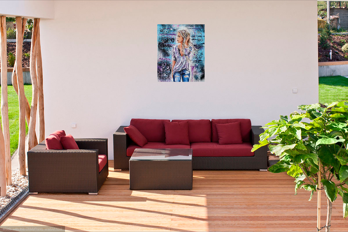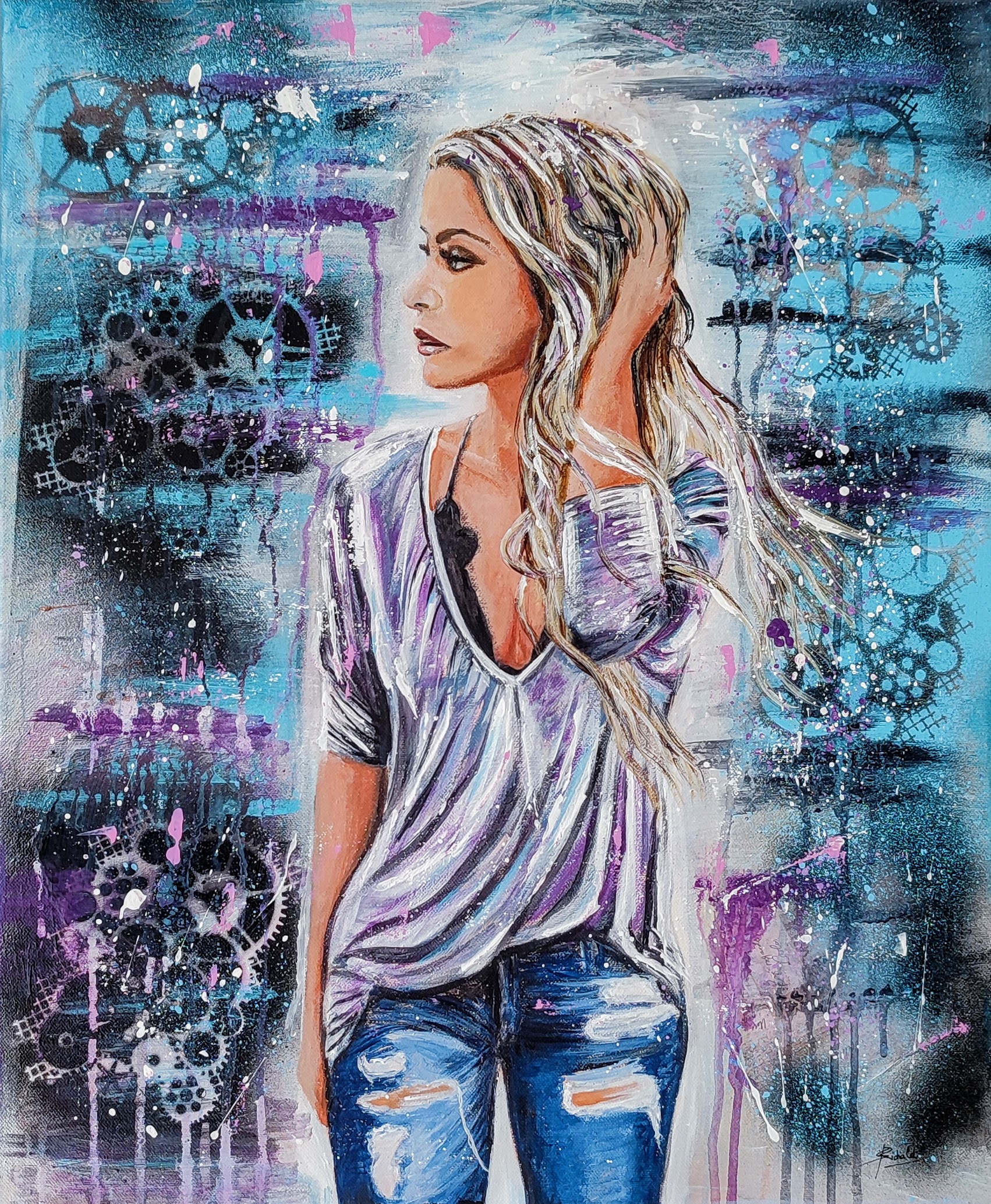 - C’est une œuvre originale, peinture acrylique,aérosol, projection sur toile coton.