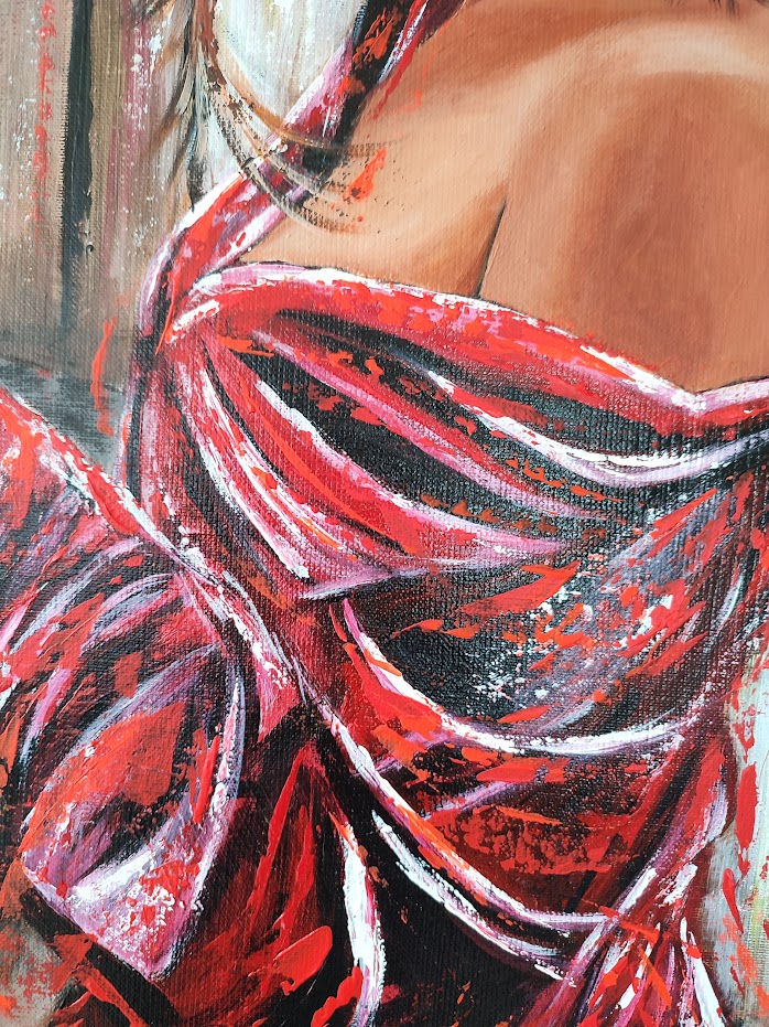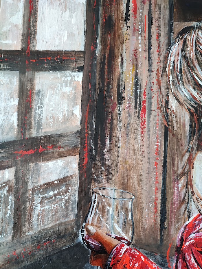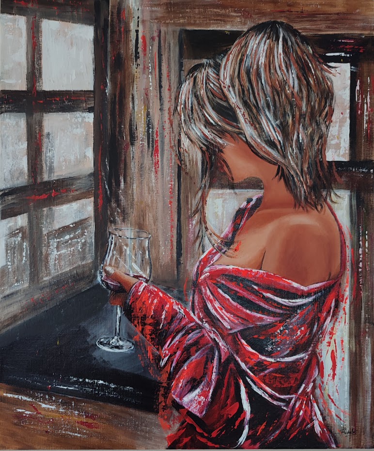 Elle est peinte à l’acrylique avec de la texture sur toile en lin, elle mesure 54 sur 65 cm