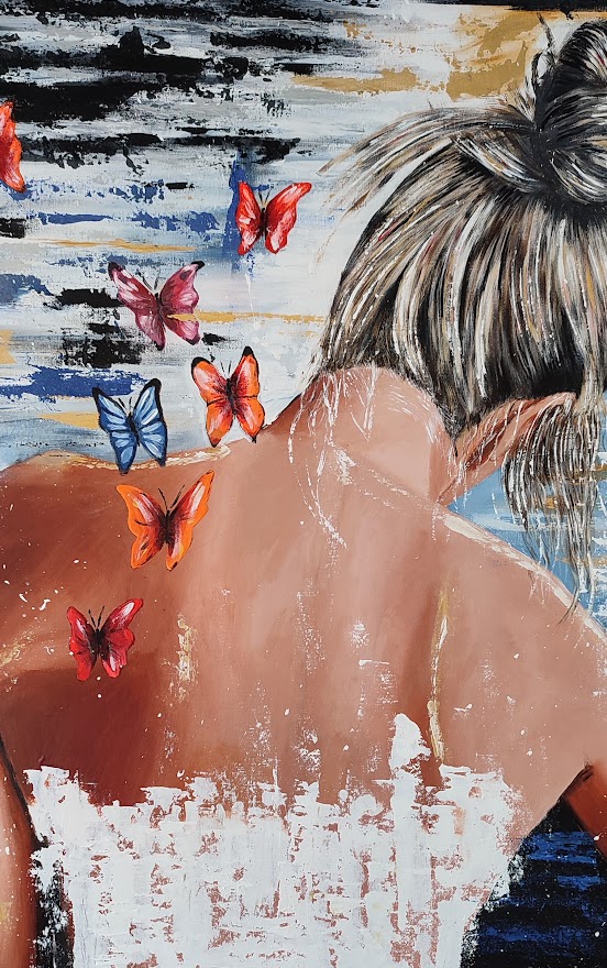 - Grandeur 1 m sur 1 m sur toile en lin cloutée, acrylique , aérosol et vernis.