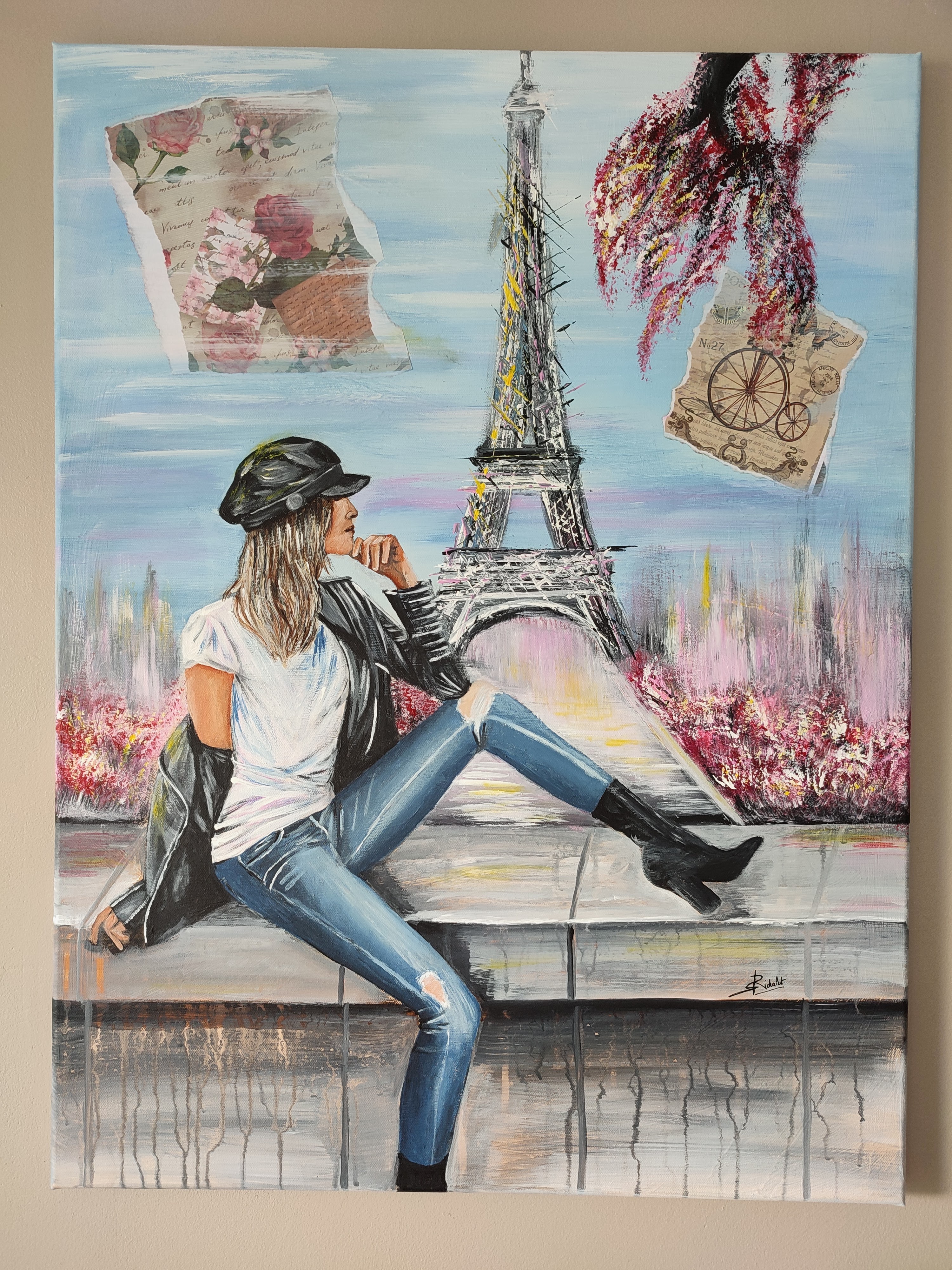 Le tableau est peint jusque sur les côtés livré prêt à être installé au mur.