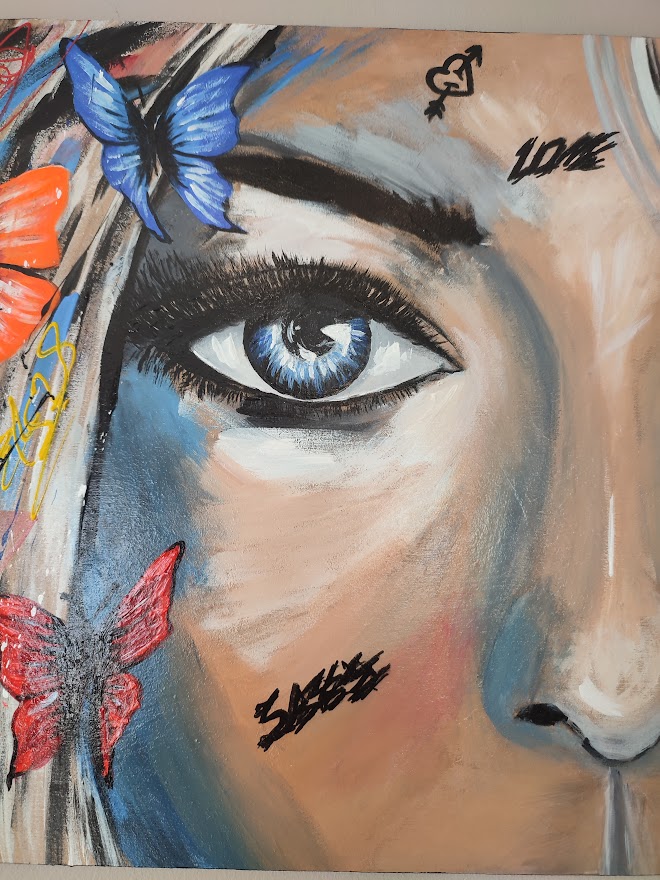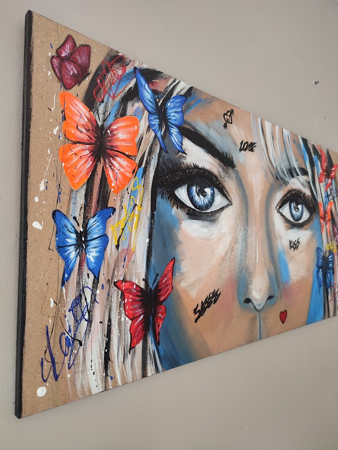 Oeuvre sur médium , acrylique, aérosol, 2 couches de vernis